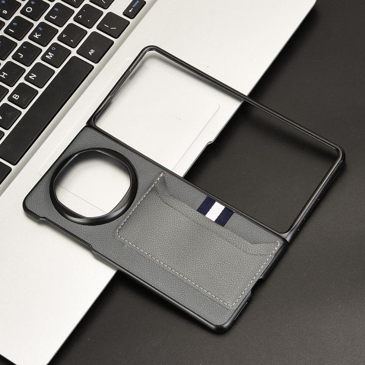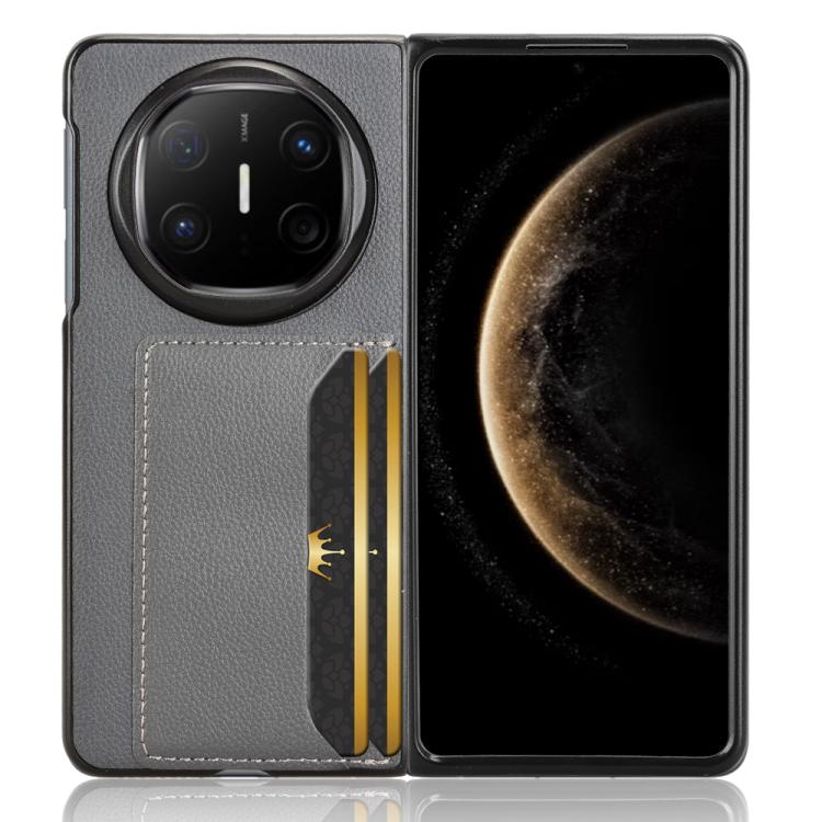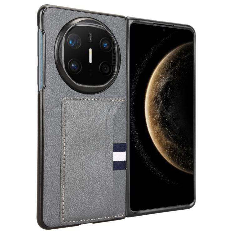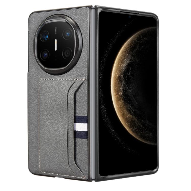 Funda Trasera Huawei Mate X6 con Ranuras para Tarjetas y Textura de Lichi (Gris)
