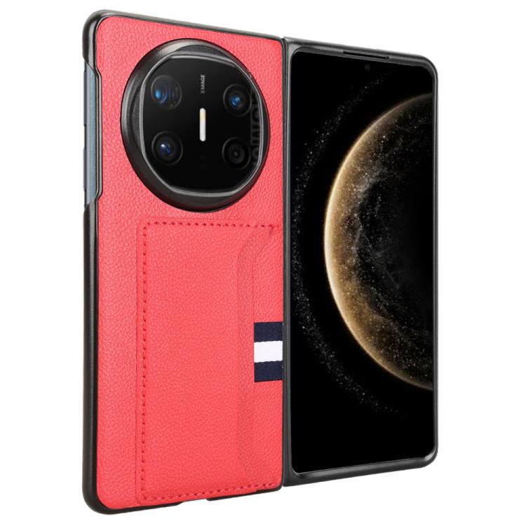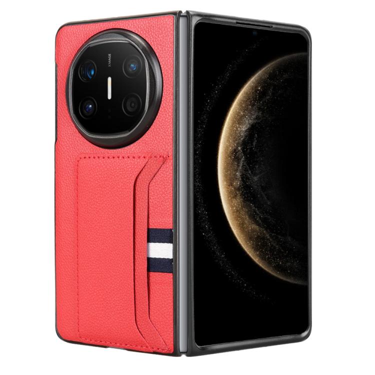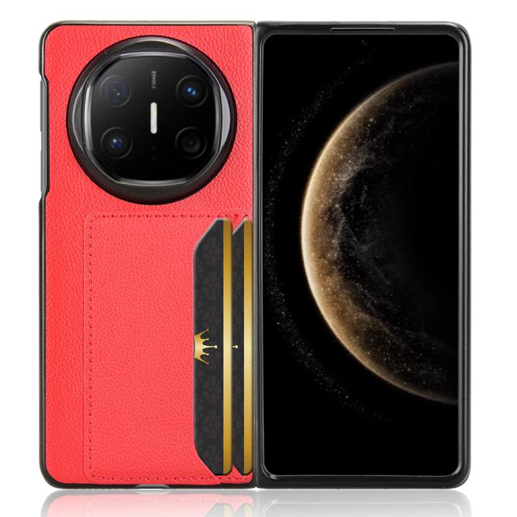 Funda Trasera Huawei Mate X6 con Ranuras para Tarjetas y Textura de Lichi (Roja)