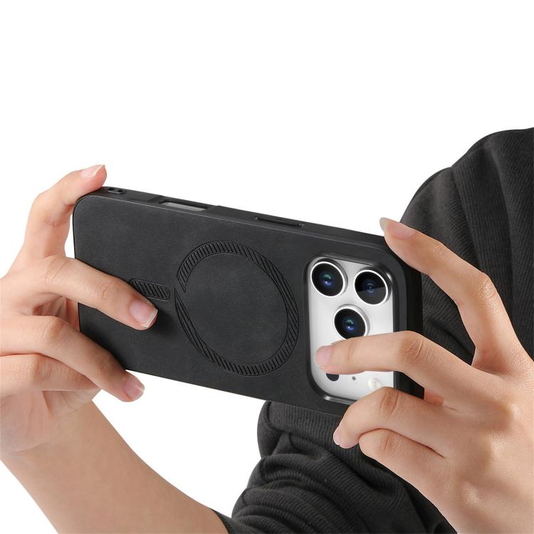 Funda trasera de PU Magsafe retro de color sólido para iPhone 17 Pro (negra)
