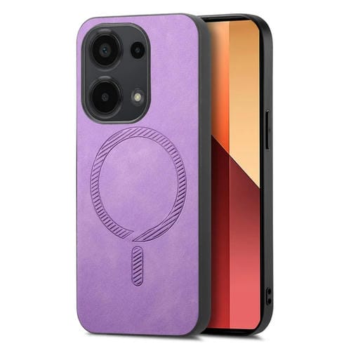 Funda Trasera de Pu Magsafe Retro de Color Sólido para Xiaomi Redmi Turbo 3 5G (Morado)