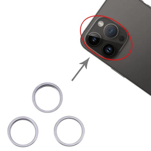 - 1x Protector de Lente de Cristal Cámara Trasera iPhone 14 Pro 3 Piezas Anillo Metal (Gris)