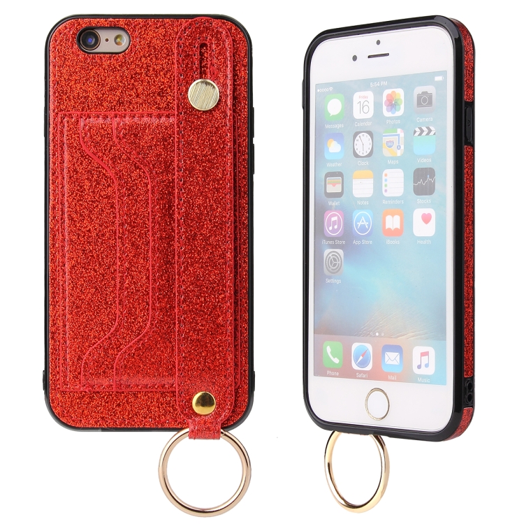 Funda Protectora Glitter Powder Pu + TPU para iPhone 6 / 6S con Soporte, Ranuras y Correa (Rojo)