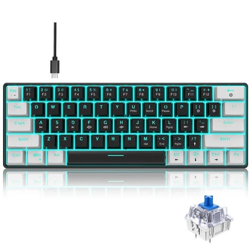 - 1x Teclado Mecánico Cableado HXSJ V900 61 Teclas Efecto Iluminación Cool (Negro Blanco)
