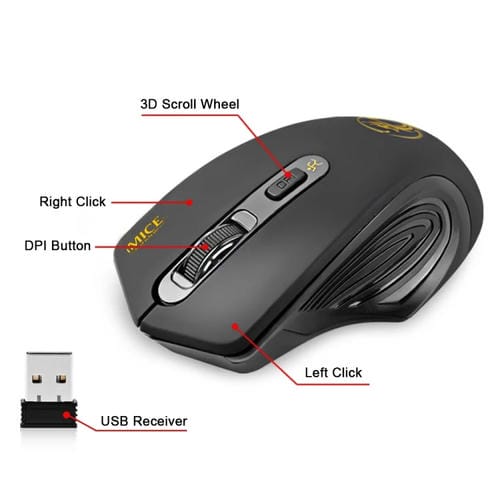 - 1x Ratón Óptico de Computadora Imice 2.4Ghz 2000Dpi con Receptor USB 3.0 Ajustable