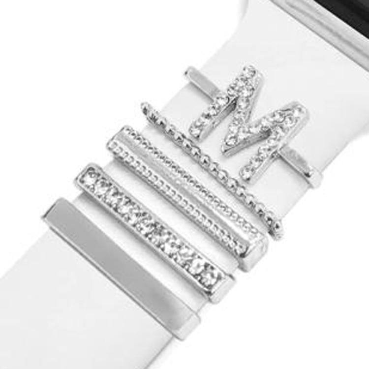 Juego de 5 anillos decorativos de metal con letras para reloj inteligente, estilo M