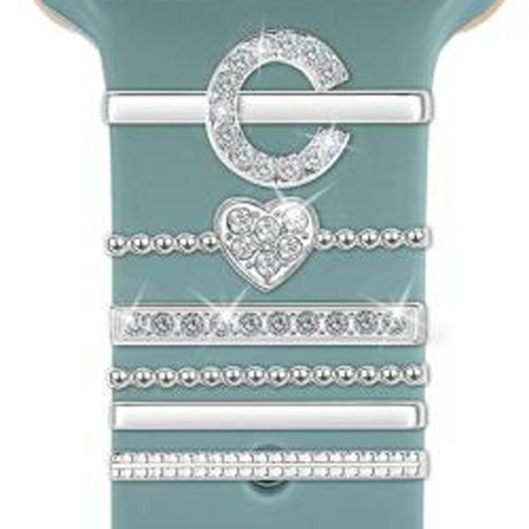 Juego de 6 correas de silicona universales para reloj inteligente, accesorios de metal decorativos, tamaño C (plata)