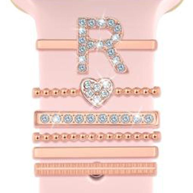 Juego de 6 correas de silicona universales para reloj inteligente, anillos decorativos de metal, talla R (oro rosa)