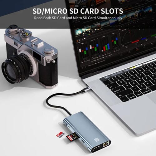 Adaptador Junsunmay 10 en 1 Tipo-C a 4K HDMI, VGA, RJ45, Audio 3,5mm, PD Carga Rápida, Lector Tarjetas SD/TF