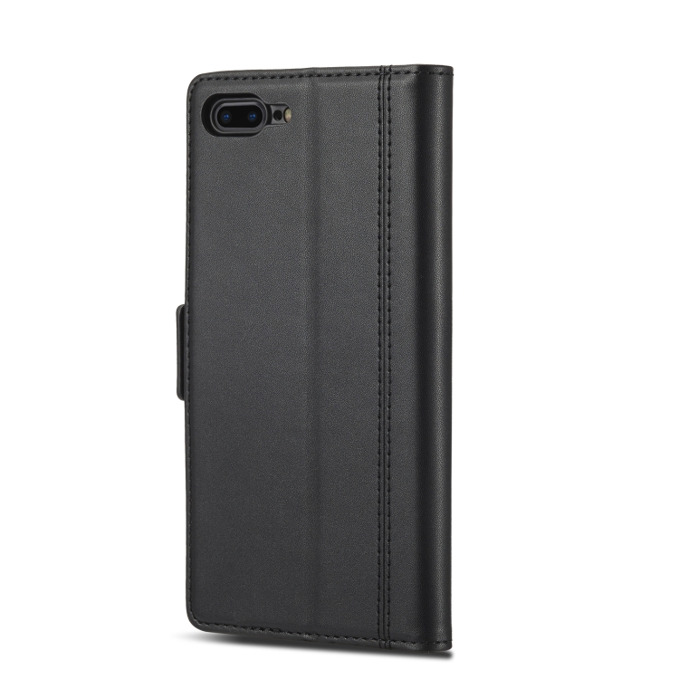 Funda de Cuero Flip Horizontal Lc.Imeeke para iPhone 8 Plus y 7 Plus con Hebilla Magnética, Soporte y Billetera (Negro)