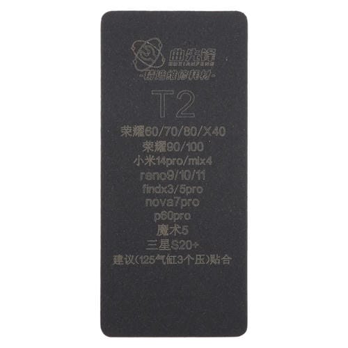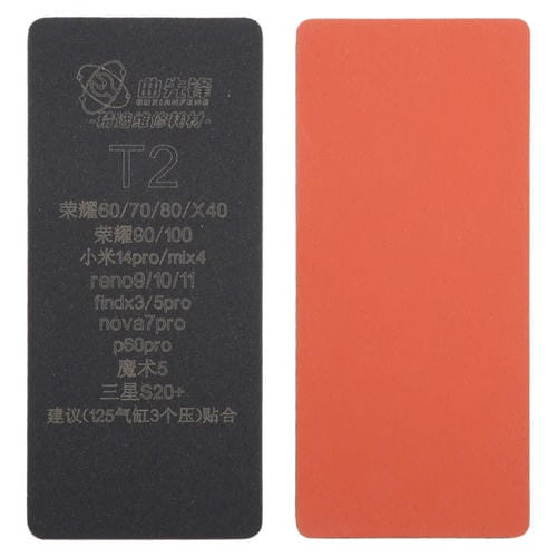La Alfombrilla de Unión Pantalla LCD Curva T2 es un accesorio especializado diseñado para facilitar la reparación y ensamblaje de Pantallas curvas en dispositivos electrónicos. Compatible con una amplia variedad de modelos de marcas reconocidas como Honor, Xiaomi, Oppo Reno, Realme, Huawei, OnePlus y Samsung, esta alfombrilla proporciona una superficie estable y segura para la adhesión precisa de Pantallas curvas. Su función principal es proteger la Pantalla durante el proceso de instalación, minimizando riesgos de daños como dobleces o grietas mediante una superficie antideslizante y suave que absorbe impactos. Además, su diseño facilita la limPieza y mantenimiento, evitando la acumulación de polvo y aceite, lo que garantiza un entorno óptimo para trabajos técnicos de reparación.