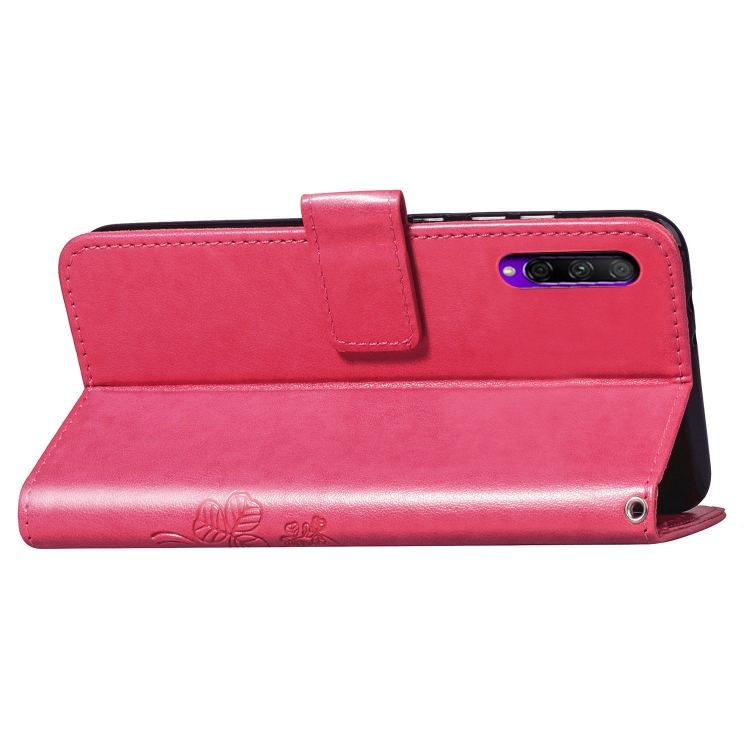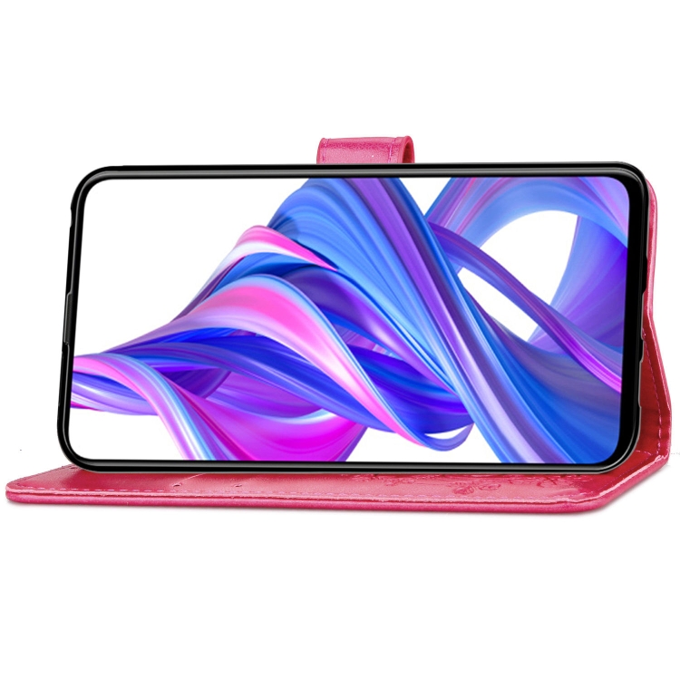 Funda de Cuero Lucky Clover para Huawei Honor 9X Pro con Soporte, Ranuras, Billetera y Correa de Mano (Rosa)