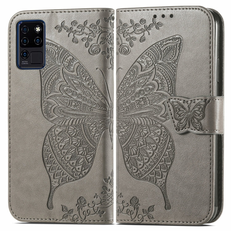 Funda Cuero Mariposa Amor Flores En Relieve con Soporte y Ranuras para Tarjetas para Oukitel C21 (Gris)