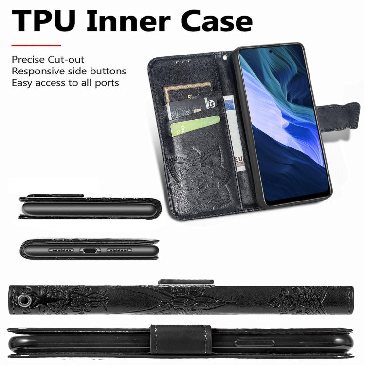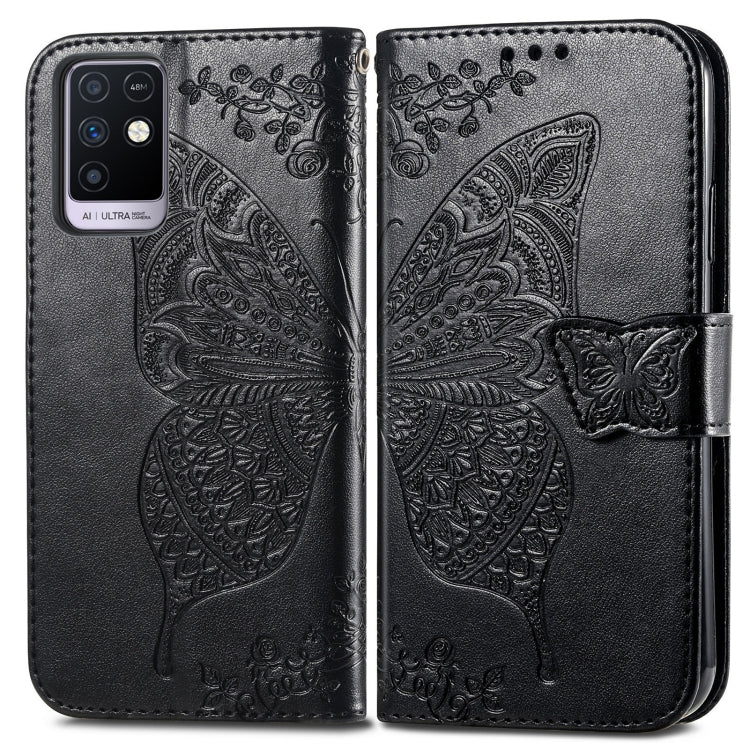 Funda Horizontal de Cuero Mariposa Amor Flores con Soporte, Tragamonedas, Billetera y Cordón para Infinix Note 10 (Negro)