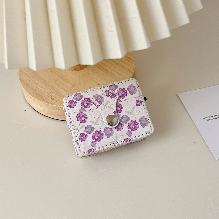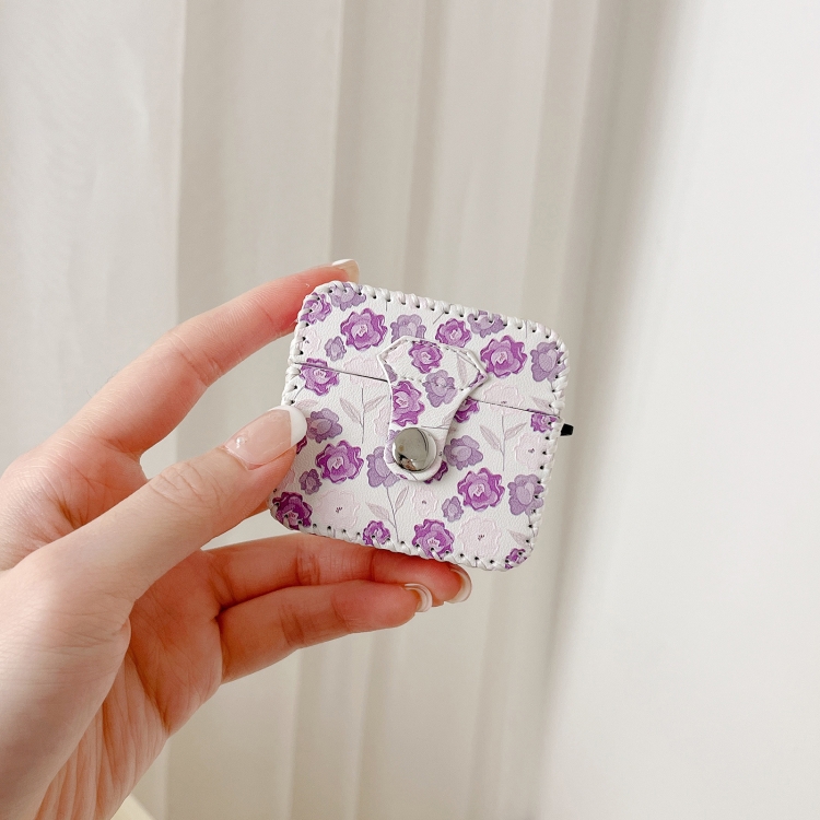 For AirPods 1/2 PU Leather Wireless Earphone Case(Purple Flowers)