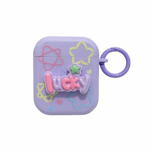 Caja para AirPods 2/1 PC Sensación de Piel Texto Fresco 3D (Púrpura)