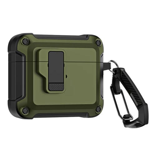 For AirPods 3 TPU+PC Wireless Bluetooth Earphone Protective Case Cover with Lock Switch and Hook (Dark Green)