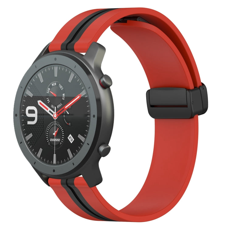 Correa de Reloj para Amazfit GTR 47mm 22mm Silicona con Cierre Magnético Plegable (Rojo + Negro)