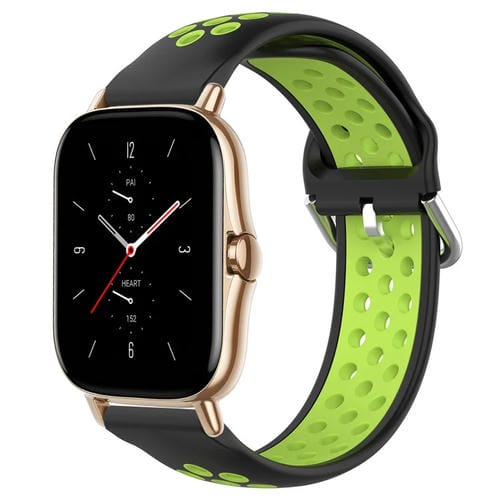 Correa de Reloj Amazfit GTS 2 20mm Silicona Deportiva Transpirable Perforada (Negro + Lima)