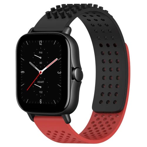 Correa de Reloj Amazfit GTS 2E Silicona Puntos 3D Transpirables Orificios 20mm (Negro + Rojo)