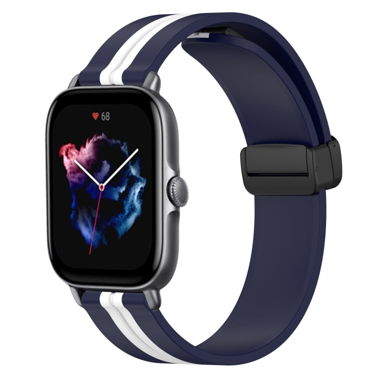 Correa de Reloj para Amazfit GTS 3 20mm Silicona con Cierre Magnético Plegable (Azul Medianoche + Blanco)