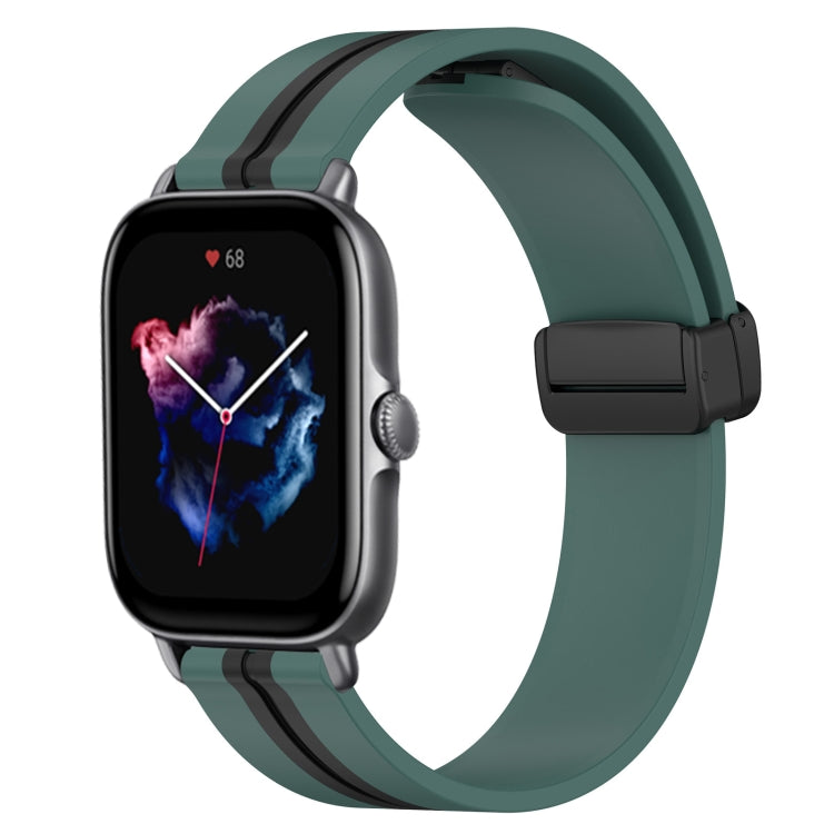 Correa de Reloj para Amazfit GTS 3 20mm Silicona con Cierre Magnético Plegable (Verde Oliva + Negro)