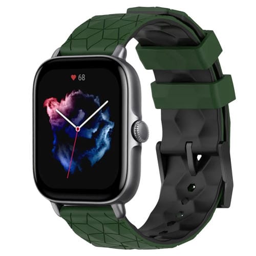 Banda de Reloj Amazfit GTS 3 20mm Silicona Textura de Fútbol (Verde Militar + Negro)