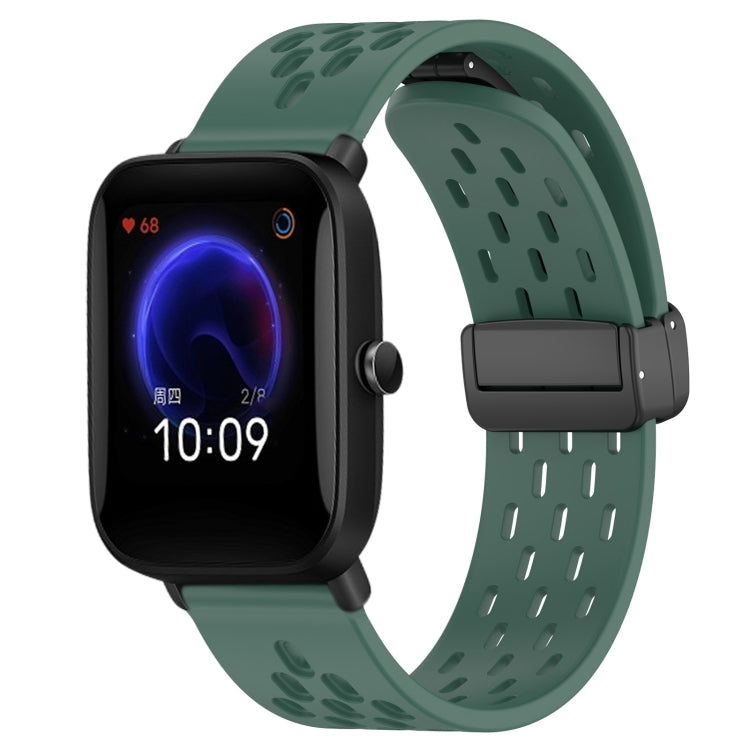 Correa de Reloj para Amazfit Pop de silicona con cierre magnético plegable de 20mm (Verde Oscuro)