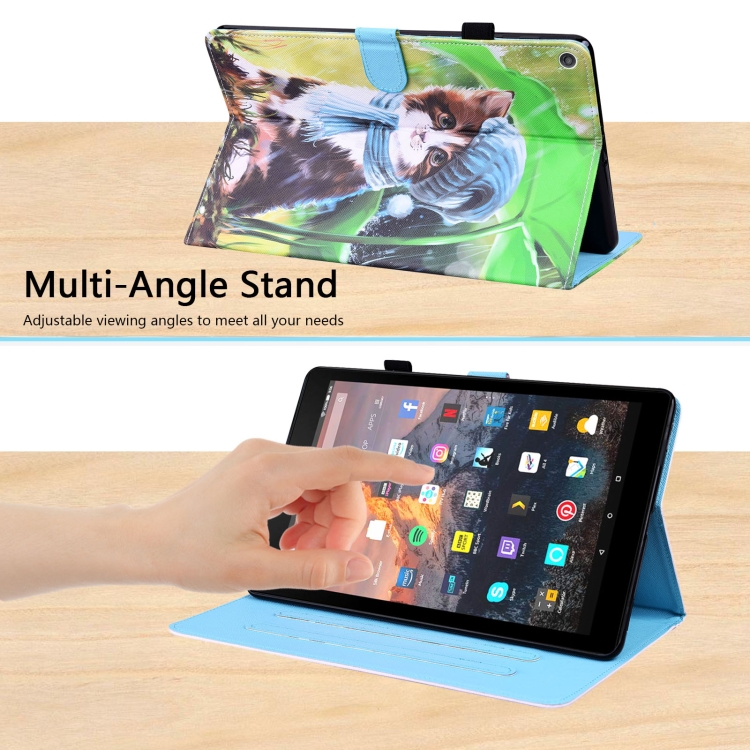 Funda de Cuero Horizontal para Amazon Fire HD 8 (2015/2016/2017/2018) con Soporte, Ranuras para Tarjetas y Función Marco y Sueño
