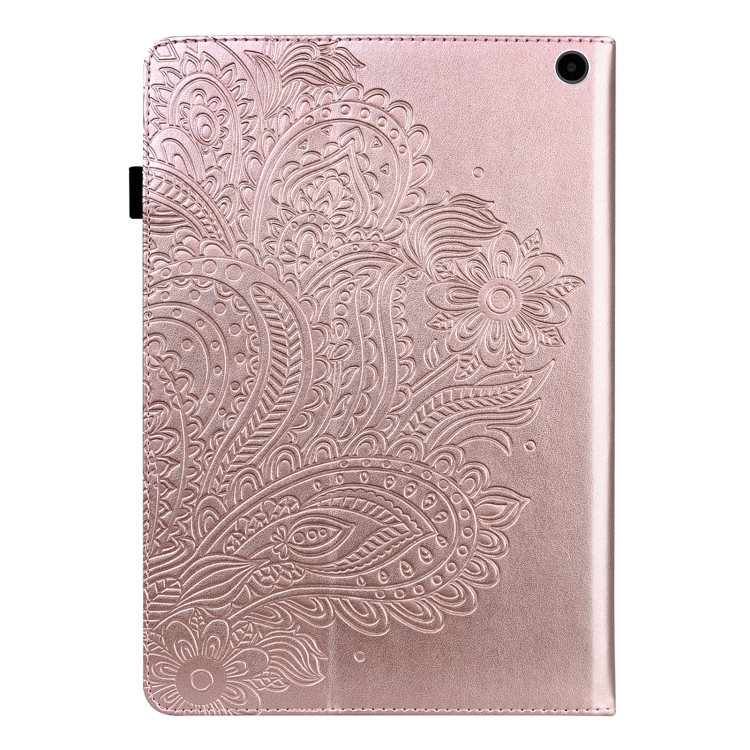 Estuche para Tableta Amazon Fire Max 11 Cuero Estampado Pavo Real en Relieve (Oro Rosa)