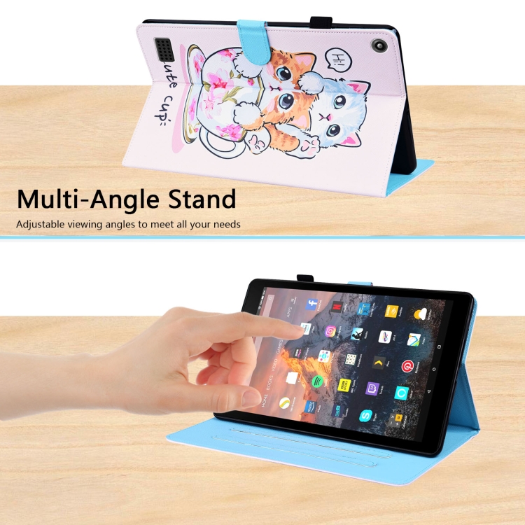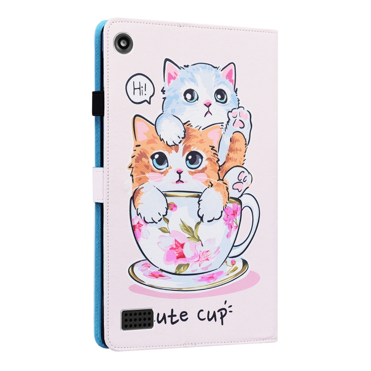 Funda de Cuero Horizontal para Amazon Kindle Fire 7 (Cat Brothers) con Soporte, Tarjetero y Función Marco y Sueño