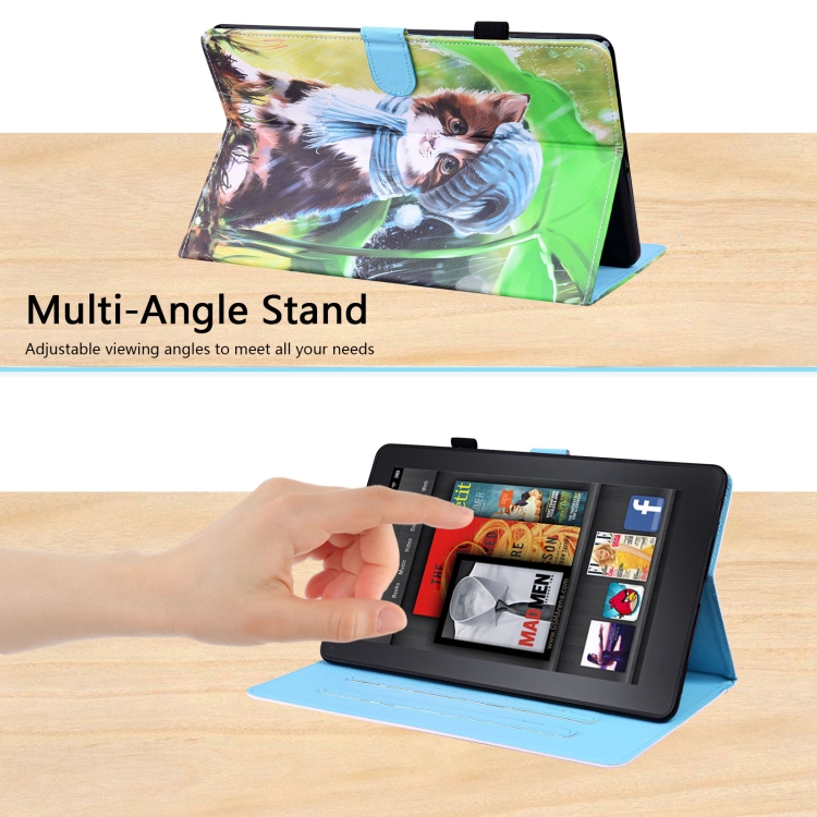 Funda de Cuero Horizontal para Amazon Kindle Paperwhite 4/3/2/1 con Soporte, Ranuras y Función Marco (Bib Kitten)
