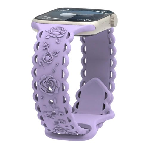 Correa de Silicona para Apple Watch Se 2023 40mm con Relieve de Rosa 3D (Púrpura Claro)