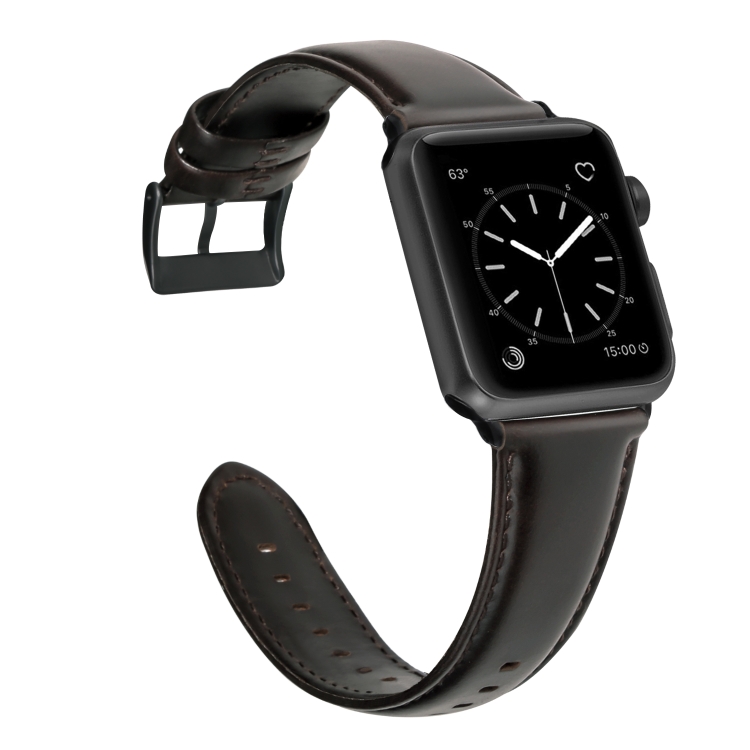 Correa para Apple Watch Series 3 de Cuero Genuino con Cera de Aceite 42mm (Marrón Oscuro)