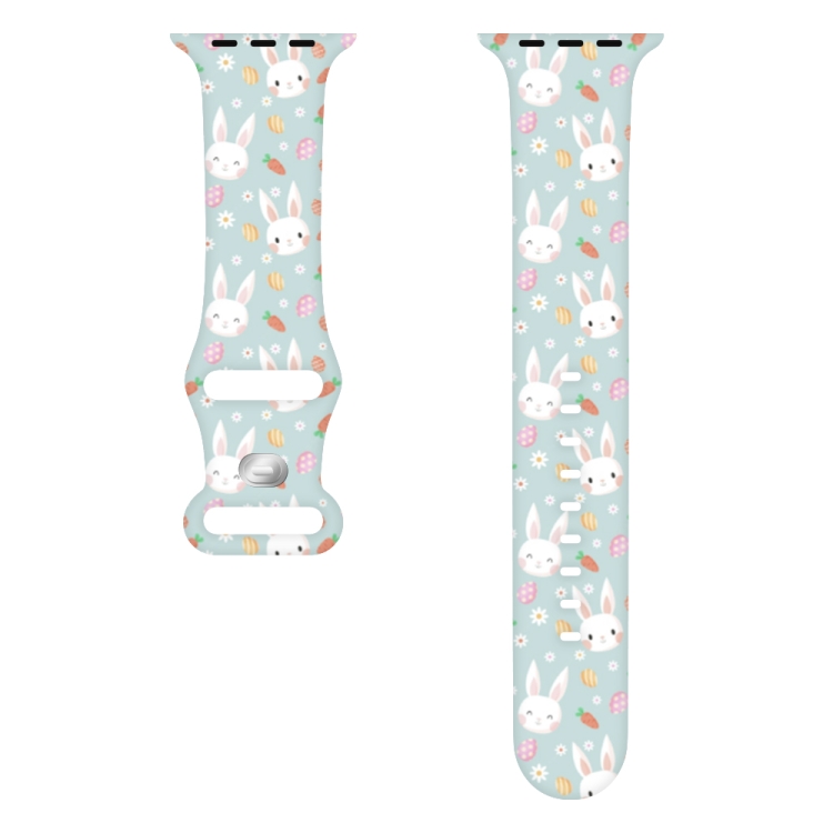 Correa de Silicona para Apple Watch Series 6 44mm con Hebilla de Mariposa y Estampado de Pascua (Verde Claro)