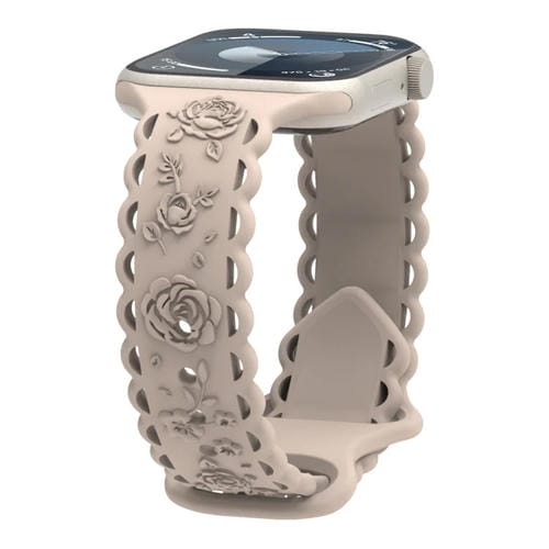 Correa de Silicona para Apple Watch Series 6 44mm con Relieve Rosa 3D (Té con Leche)
