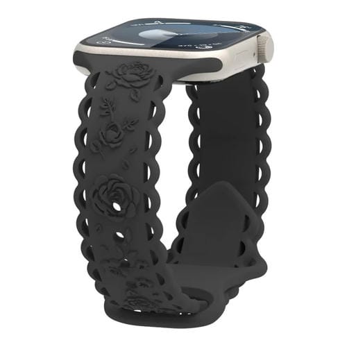 Correa de Silicona para Apple Watch Series 7 con Relieve de Rosa 3D y Encaje de 45mm (Negro)