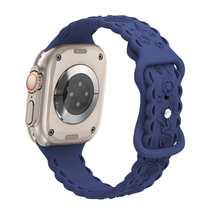 Correa de Silicona para Apple Watch Ultra 49mm con Relieve Rosa 3D y Encaje (Azul Marino)