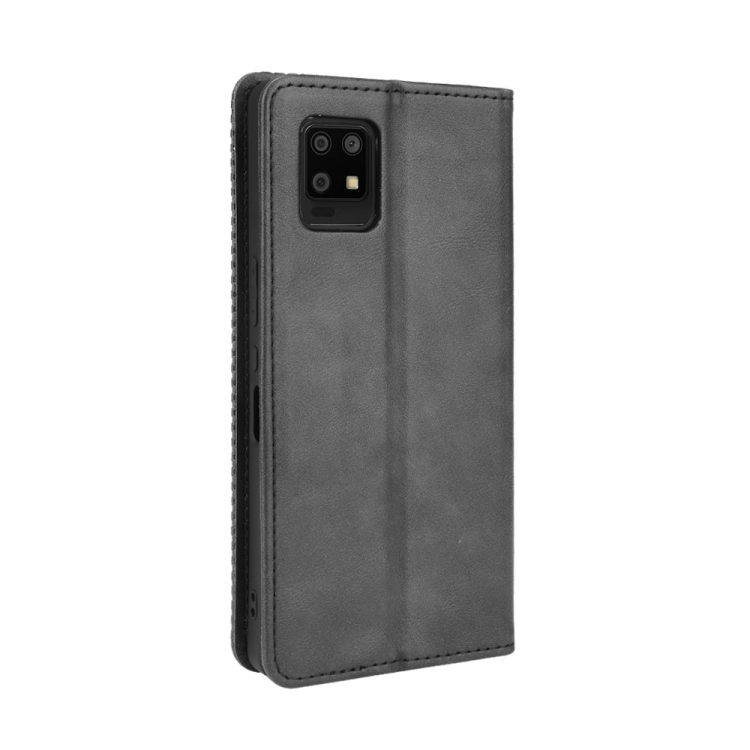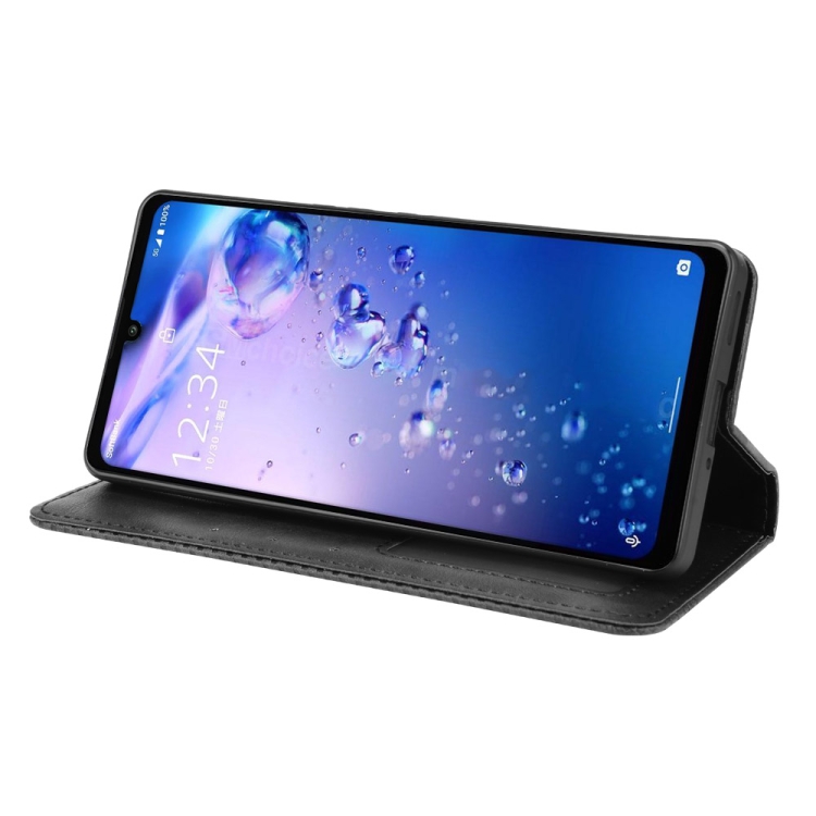 Funda de Cuero para Aquos Zero6 con Hebilla Magnética, Textura Crazy Horse, Soporte y Ranuras para Tarjetas (Negro)