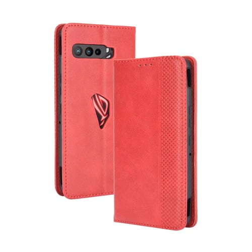 Funda de Cuero para Asus Rog Phone 3 Zs661Ks con Hebilla Magnética, Tapa Horizontal, Soporte y Ranuras para Tarjetas (Rojo)