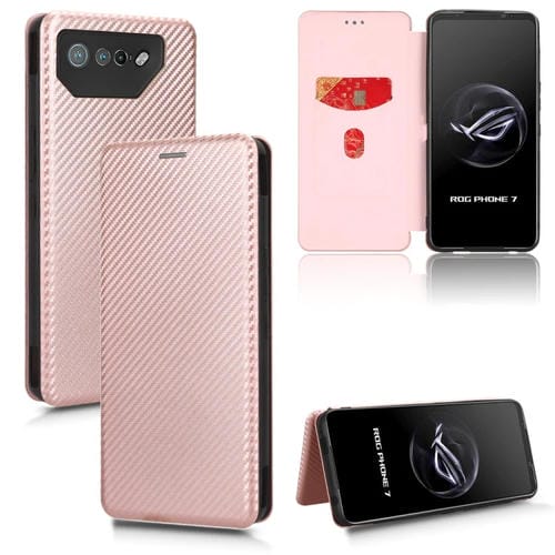 Funda de Cuero para Asus Rog Phone 7 con Tapa de Textura de Fibra de Carbono (Rosa)