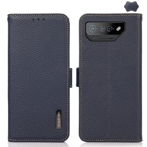Funda para Asus Rog Phone 7 Khazneh Side-Magnetic Litchi Cuero Genuino Rfid (Azul)