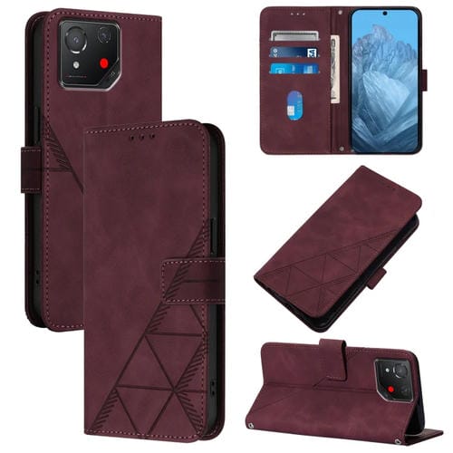 Funda de Cuero para Asus Rog Phone 8 Crossbody con Tapa en Relieve 3D (Rojo Vino)