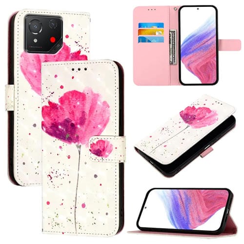 Funda para Asus Rog Phone 8 de Cuero con Tapa Horizontal y Pintura 3D (Flor)