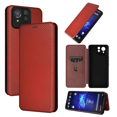 Funda de Cuero para Asus Rog Phone 8 Pro con Tapa y Textura de Fibra de Carbono (Marrón)