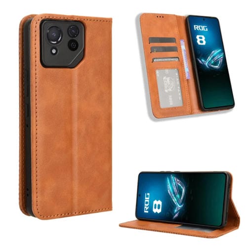 Funda para Asus Rog Phone 8 Pro de Cuero con Textura Retro y Hebilla Magnética (Marrón)