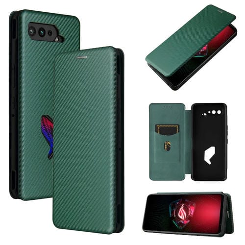 For ASUS ROG PHONE 5 Carbon Fiber Texture Magnetic Horizontal Flip TPU+PC+PU Leather Case with Card Slot(Green)