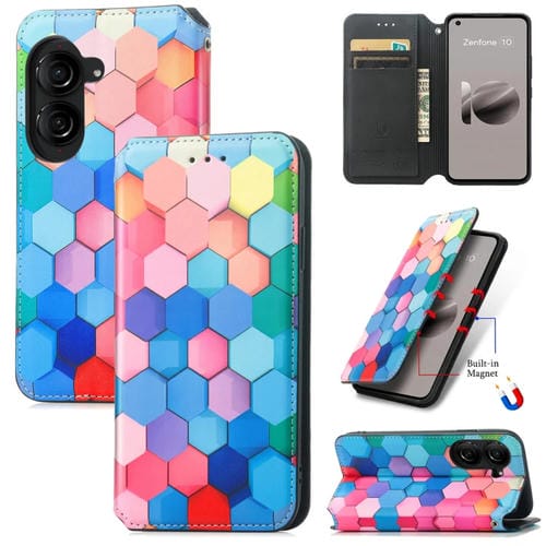 Funda de Cuero Magnética Caseneo para Asus Zenfone 10 (Cubo Colorido)