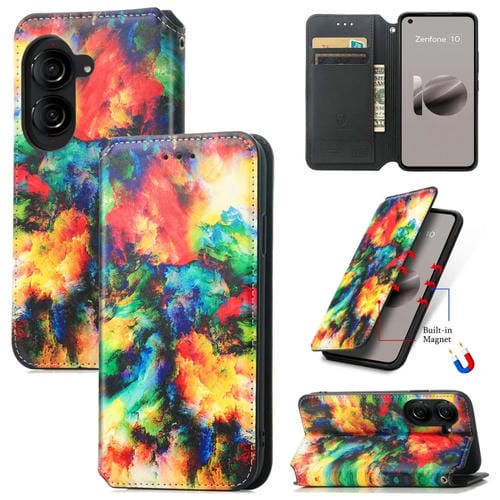 Funda de Cuero Magnética Caseneo para Asus Zenfone 10 (Nube Colorida)