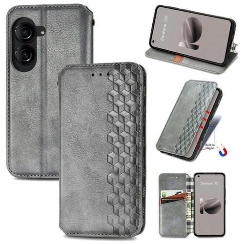 Funda de Cuero Magnético Prensado para Asus Zenfone 10 Cubic Grid (Gris)