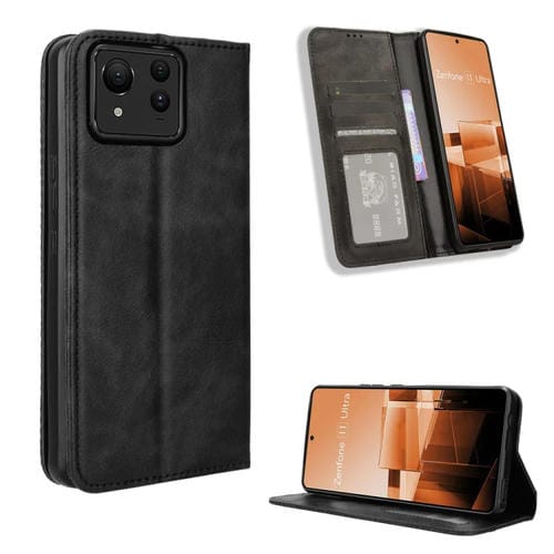Funda para Asus Zenfone 11 de Cuero con Textura Retro y Hebilla Ultra Magnética (Negro)